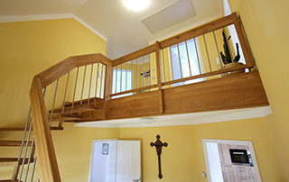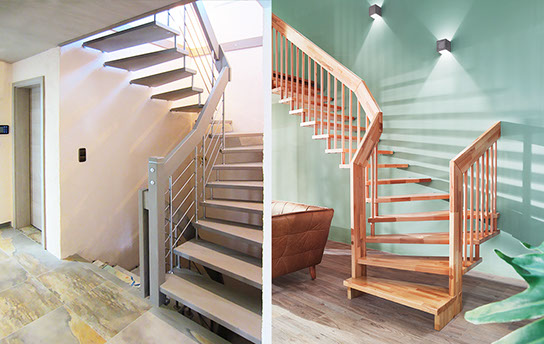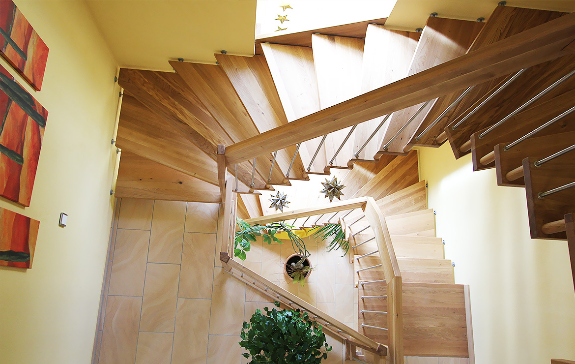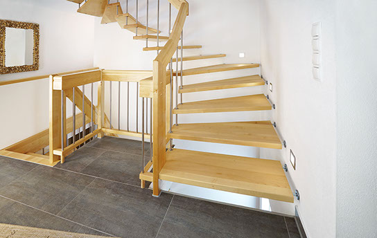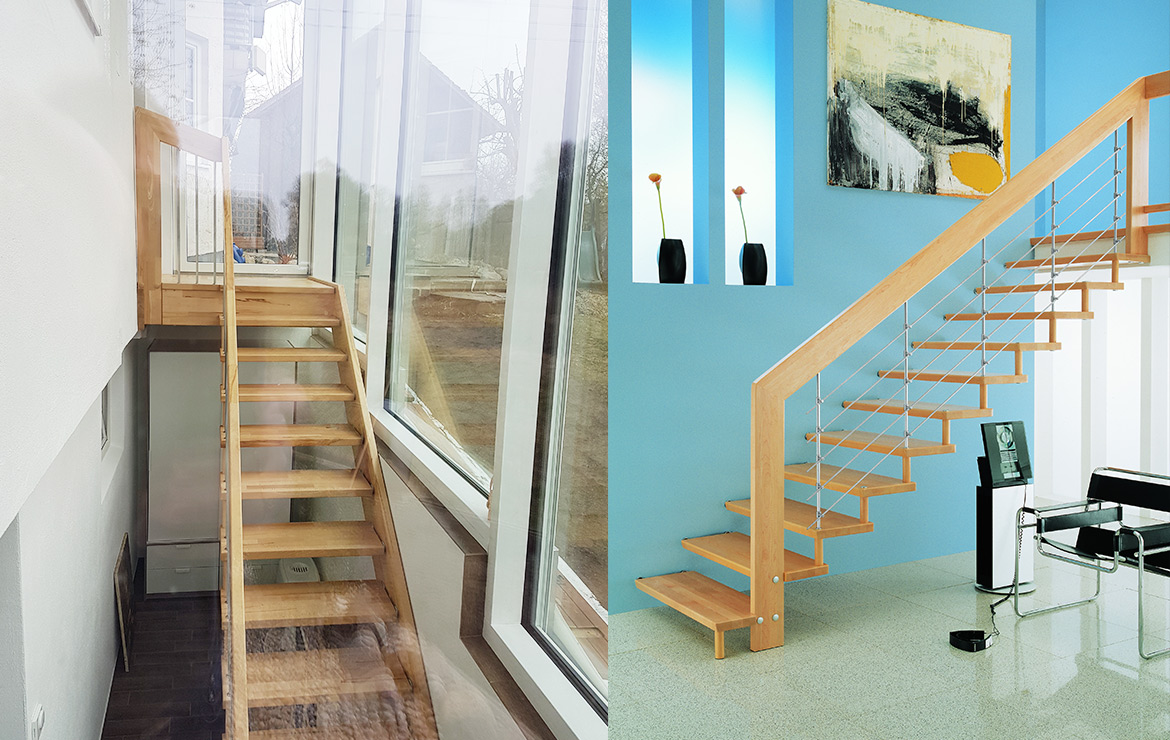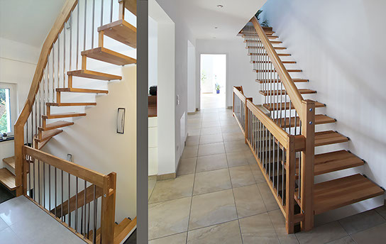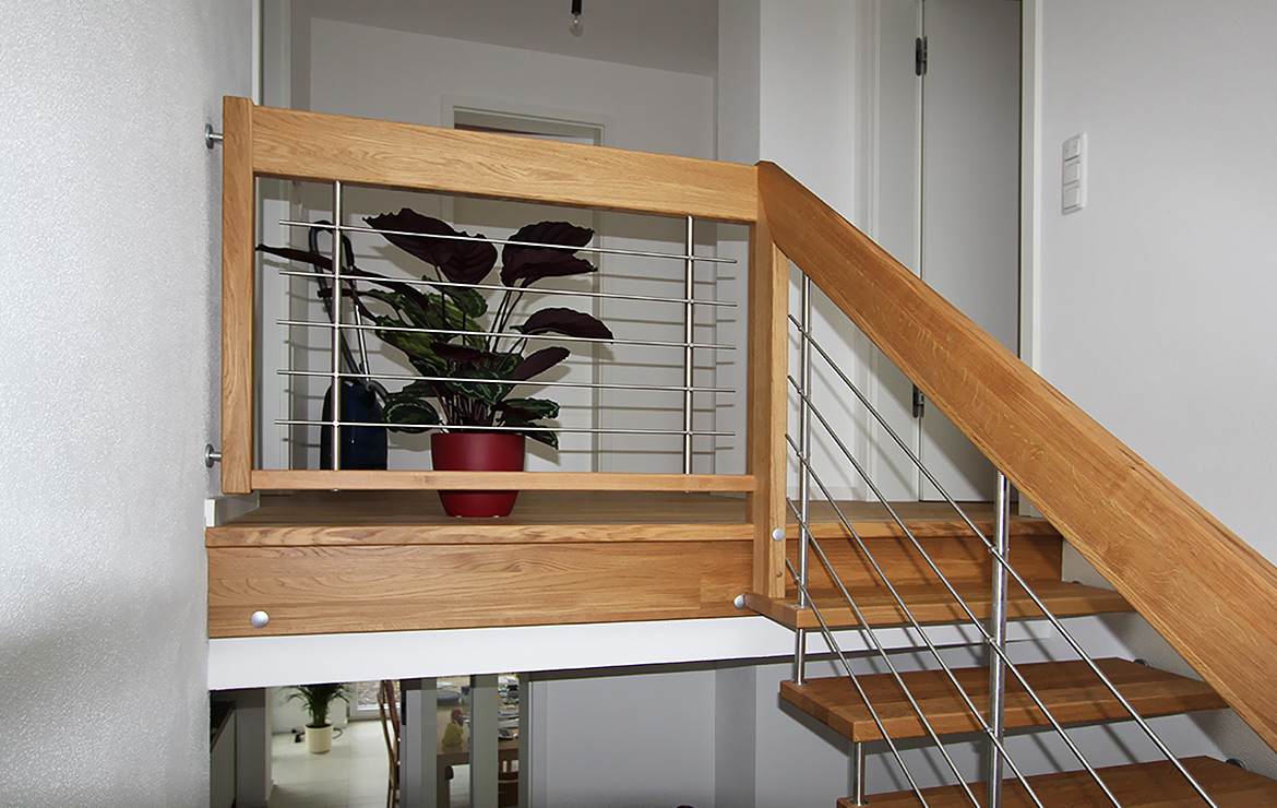 Eine große Menge unterschiedlichster Geländerformen und Materialien sind möglich. Die Holzarten können Sie auf unserer Seite auswählen. Weiter zu den Holzarten.